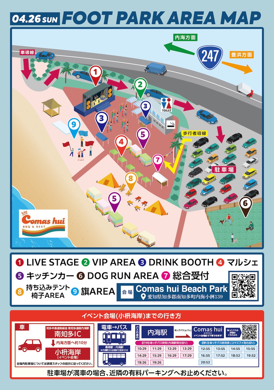 駐車場は、AREA MAPに記載の駐車場をご利用ください。